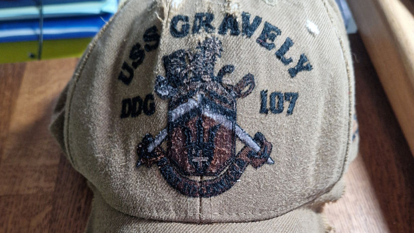 December 2023, a cap was found washed up around the Bill point, bit seaweed-y, been in the sea a while maybe, depicting the name of the USS Gravely DDG 197 an American guided missile destroyer. We contacted the cap manufacturer, The Corps (supplier of caps for all U.S. Navy ships), based in Santa Barbara, CA to let them know where one had washed up and it turned out the Production Manager was from Scotland. He was delighted to hear from us.
